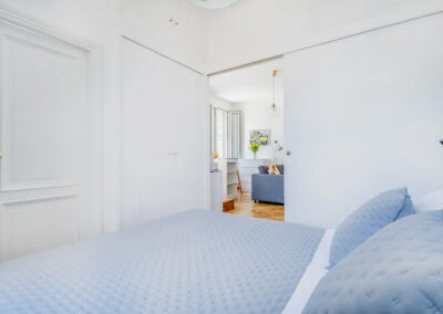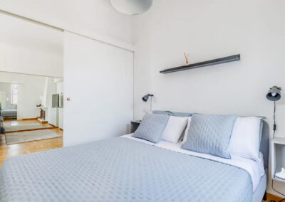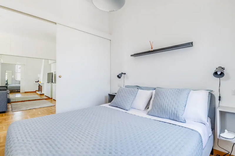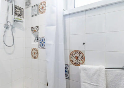 The room is equipped with a queen size bed with Memory Foam mattress and pillows, at the sides of which you will find a bedside table with reading lamp, en suite bathroom with large shower, complete with linen and courtesy set and a functional built-in wardrobe with additional blankets and pillows for your stay.