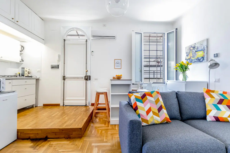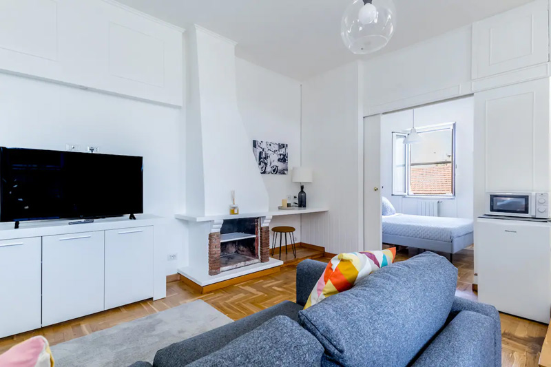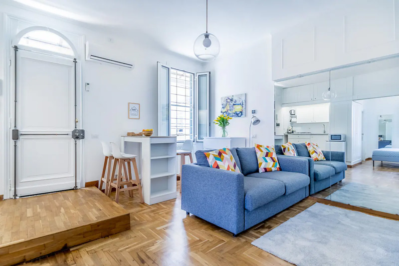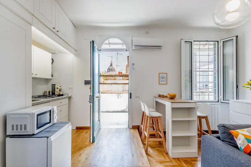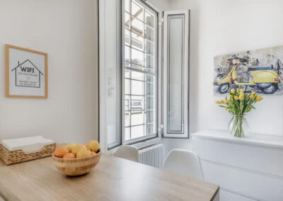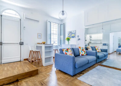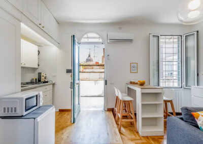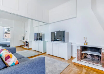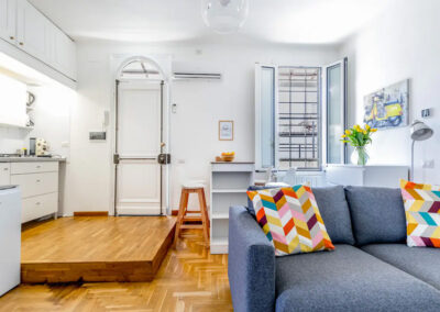“ATTICO SAN PIETRO” is an exclusive penthouse, in the Prati district, inside an elegant period building with full day concierge service, which has a living area with office corner and equipped kitchen, dining area, bedroom with en suite bathroom with window.